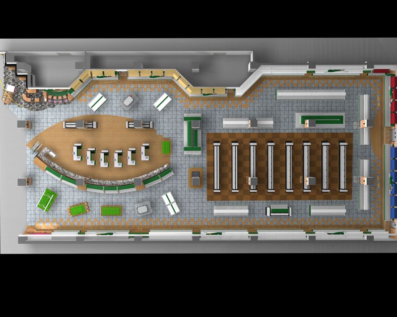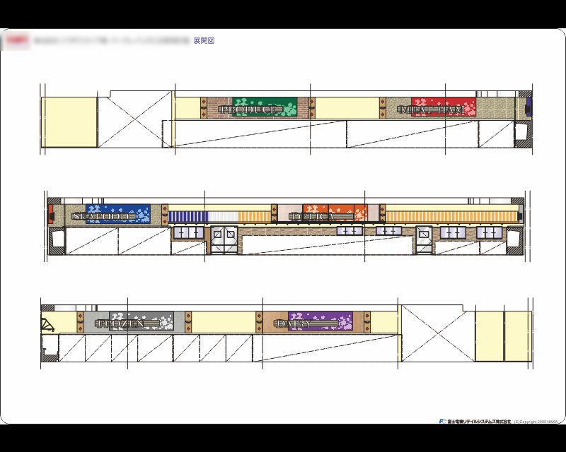 食品スーパー企画レイアウト・デザインの一例です、クリックすると画像が大きく見れます。飲食店・各種専門店企画レイアウトデザイン